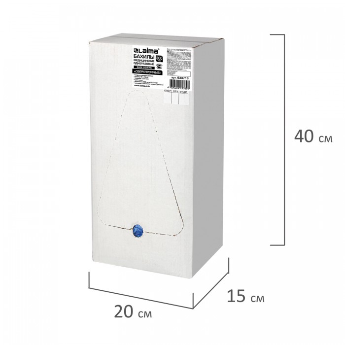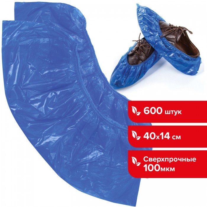 Бахилы КОМПЛЕКТ 600 шт. (300 пар), СВЕРХПРОЧНЫЕ, двойная резинка, 40х14 см, 100 мкм, 10 г, LAIMA, 630719