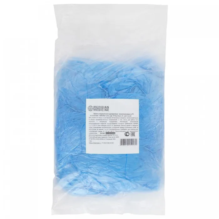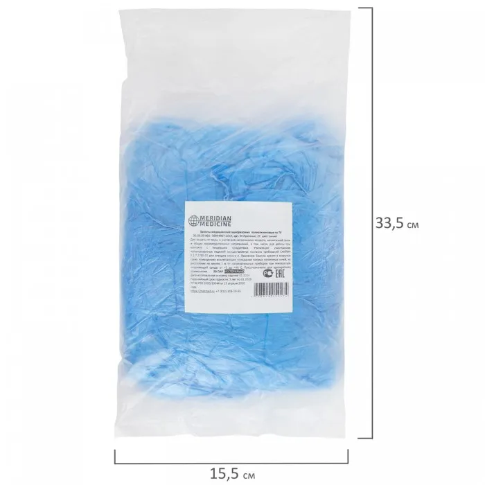 Бахилы MERIDIAN ПРОЧНЫЕ 3,8 грамма, синие, КОМПЛЕКТ 100 штук (50 пар), 40х15 см, ПНД