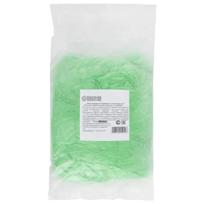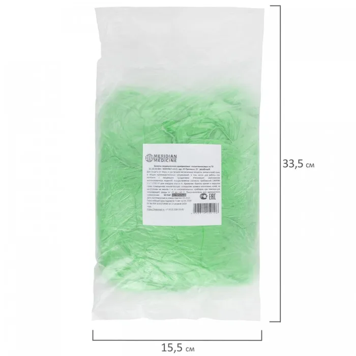 Бахилы MERIDIAN ПРОЧНЫЕ 3,8 грамма, зеленые, КОМПЛЕКТ 100 штук (50 пар), 40х15 см, ПНД