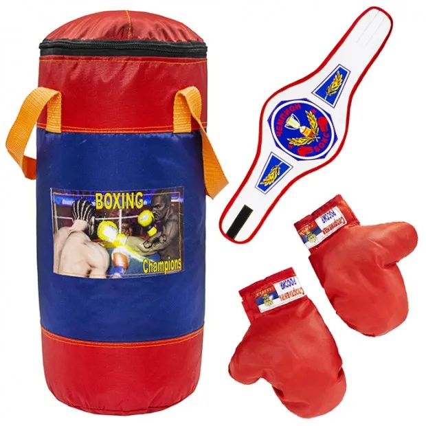 Комплект: груша - 1 шт., пояс - 1 шт., перчатки - 1 пара, медаль - 1 шт. Материал: пластик, нейлон Упаковка: пакет Размер упаковки: 19,5*19*54 см Страна обладатель бренда: Россия Спорт важен для гармоничного развития ребенка. Набор для бокса - это прекрасный подарок для юного боксера. Набор выполнен из высококачественных износостойких материалов, что обеспечит долговечность и безопасность использования. Яркое оформление понравится юному боксеру, ребенок надолго запомнит такой подарок, будет с удовольствием проводить время с новой игрушкой. Груша не тяжелая, так как эта игрушка не должна травмировать ребенка. Набор не подходит для профессиональных занятий боксом.