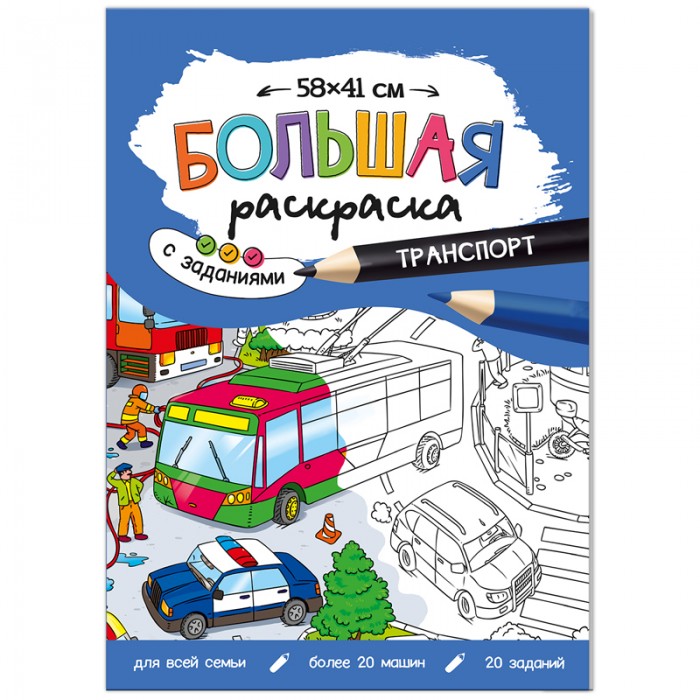 Большая раскраска с заданиями – это увлекательное путешествие в мир транспорта и занимательный досуг для всей семьи! Найдите всех людей в касках, сосчитайте легковые автомобили, пройдите лабиринт и разгадайте шифр. На картинке больше 20 машин! Выполняйте задания, находите важные детали и раскрашивайте машины – вместе! Раскраска развивает мышление, мелкую моторику, творческие способности и помогает готовить руку к письму. Рекомендованный возраст: 6+."