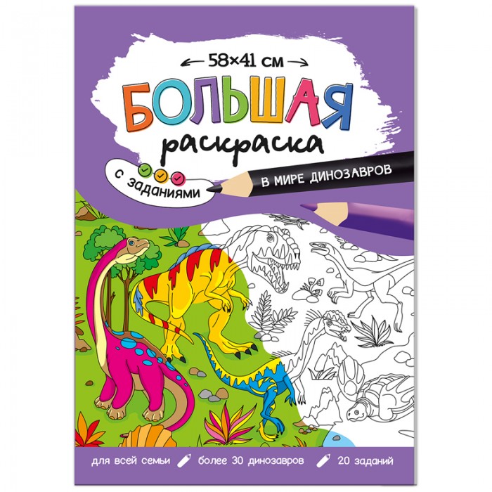 Большая раскраска 580*410 ГЕОДОМ "В мире динозавров" с заданиями