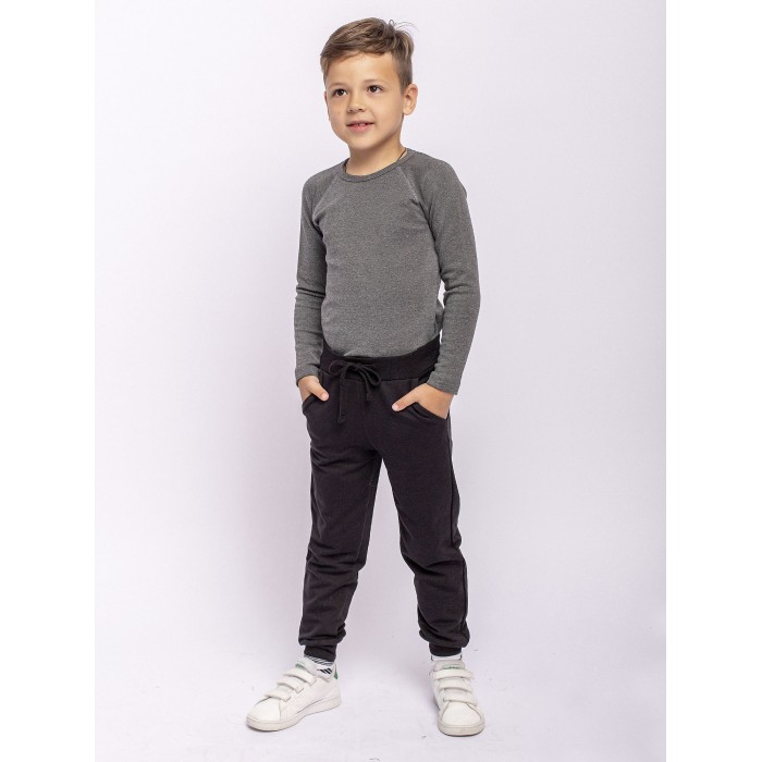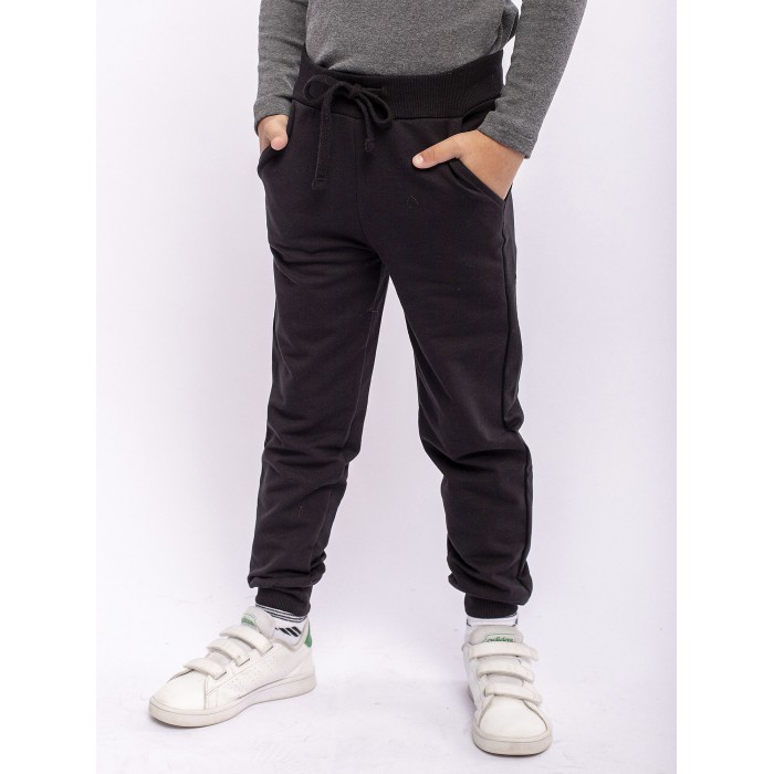 Брюки спортивные для детей из футера вы можете купить в нашем интернет-магазине. Эластичный пояс со шнурком, боковые карманы, однотонная черная расцветка.