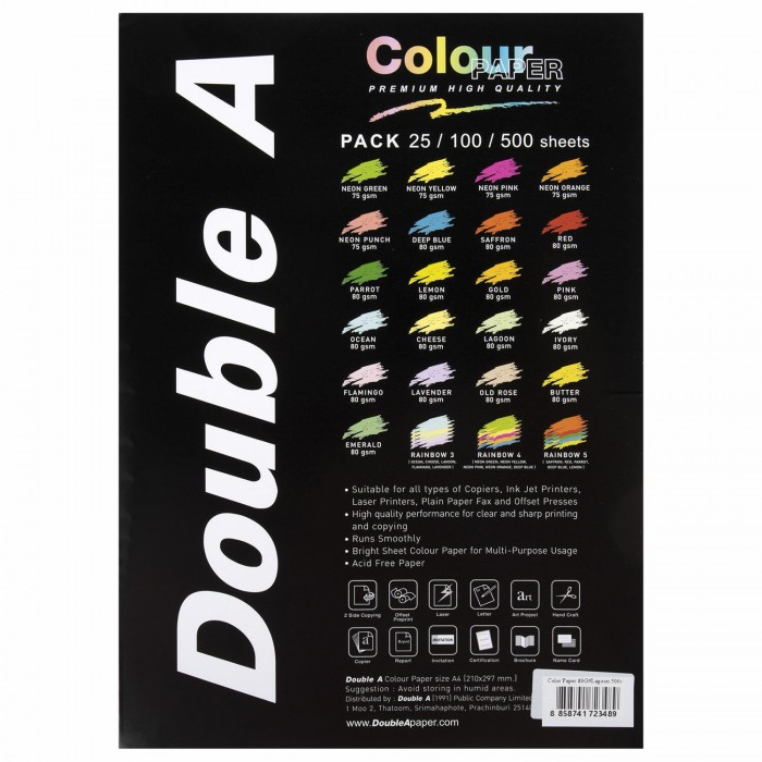 Первоклассная цветная бумага DOUBLE A пастельного цвета обеспечивает превосходное качество при копировании, печати на лазерном или струйном принтере.