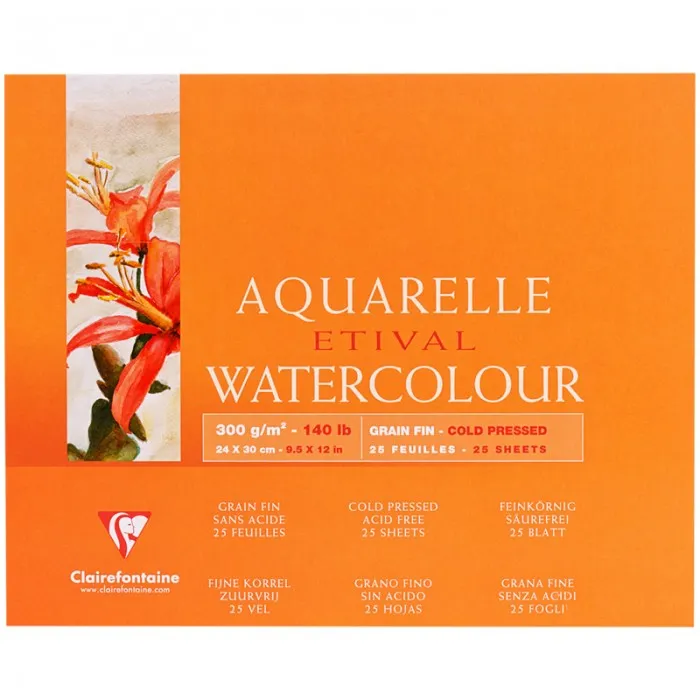 Бумага для акварели, 25л., 240*300мм, Clairefontaine "Etival", 300г/м2, холод. пресс., склейка по сторонам