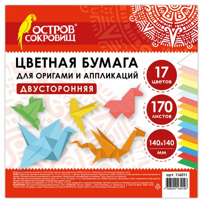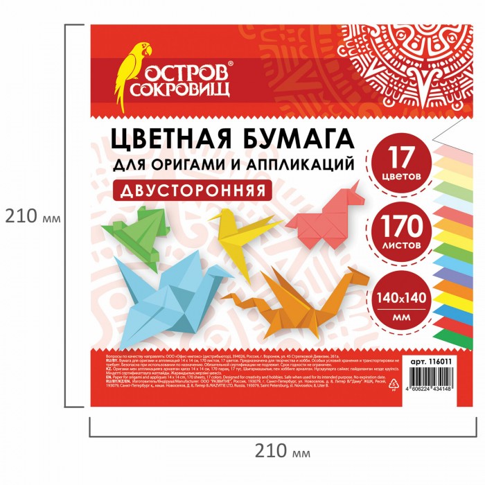 Бумага для оригами и аппликаций ОСТРОВ СОКРОВИЩ предназначена для создания оригинальных поделок в технике оригами. Способствует развитию фантазии, творческих способностей, усидчивости.