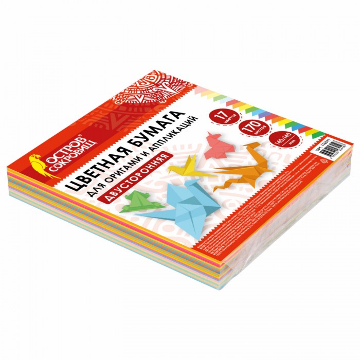 Бумага для оригами и аппликаций 14х14 см, 170 листов, 17 цветов, ОСТРОВ СОКРОВИЩ, 116011