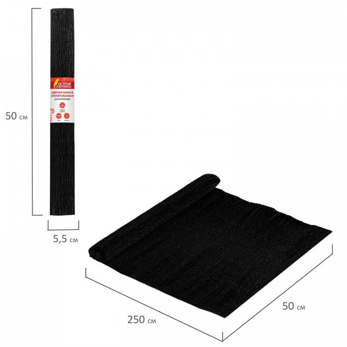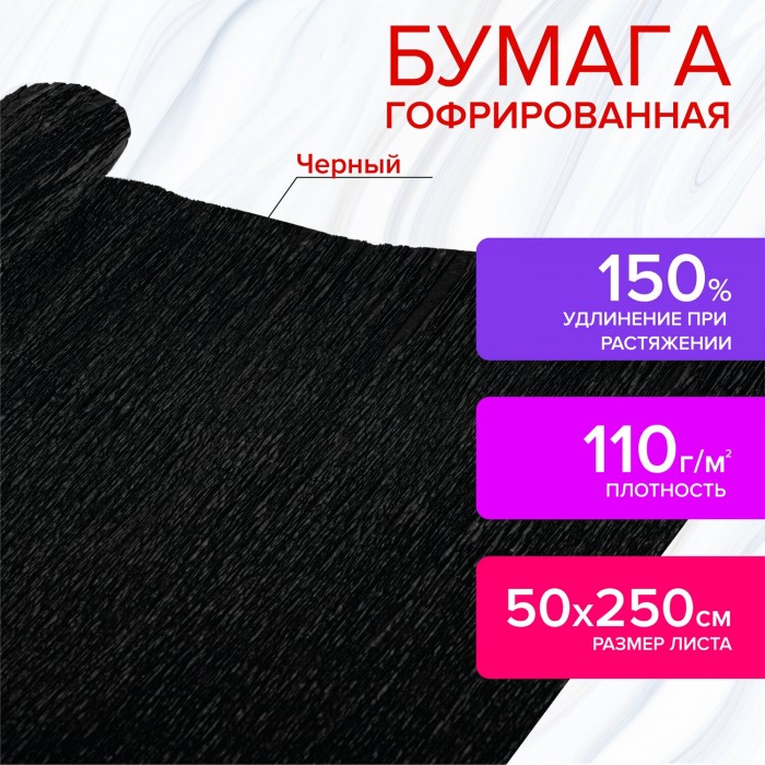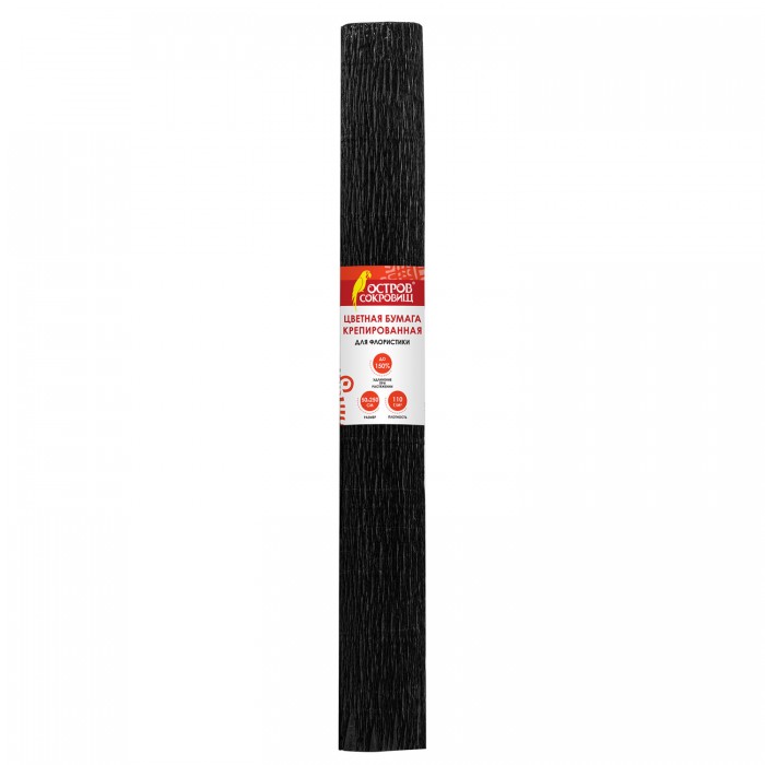 Бумага гофрированная/креповая, 110 г/м2, 50х250 см, черная, в рулоне, ОСТРОВ СОКРОВИЩ, 112543