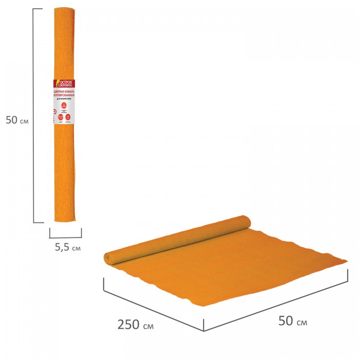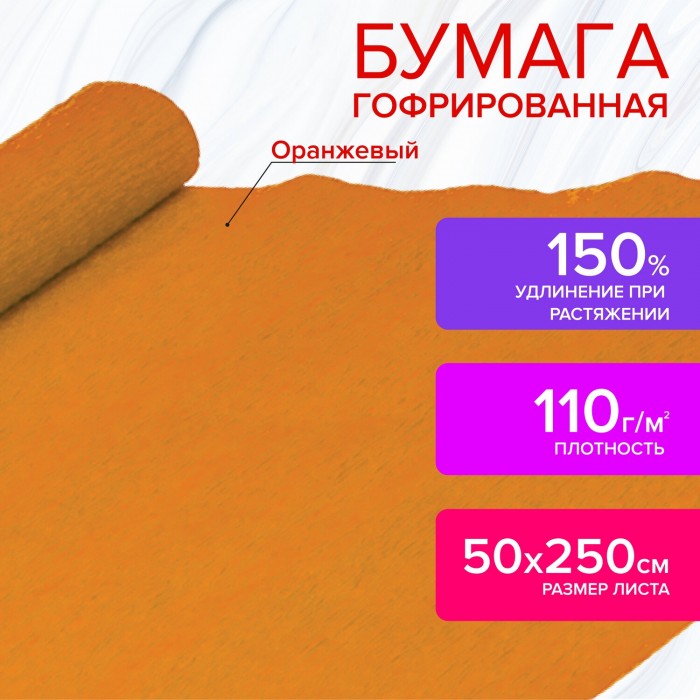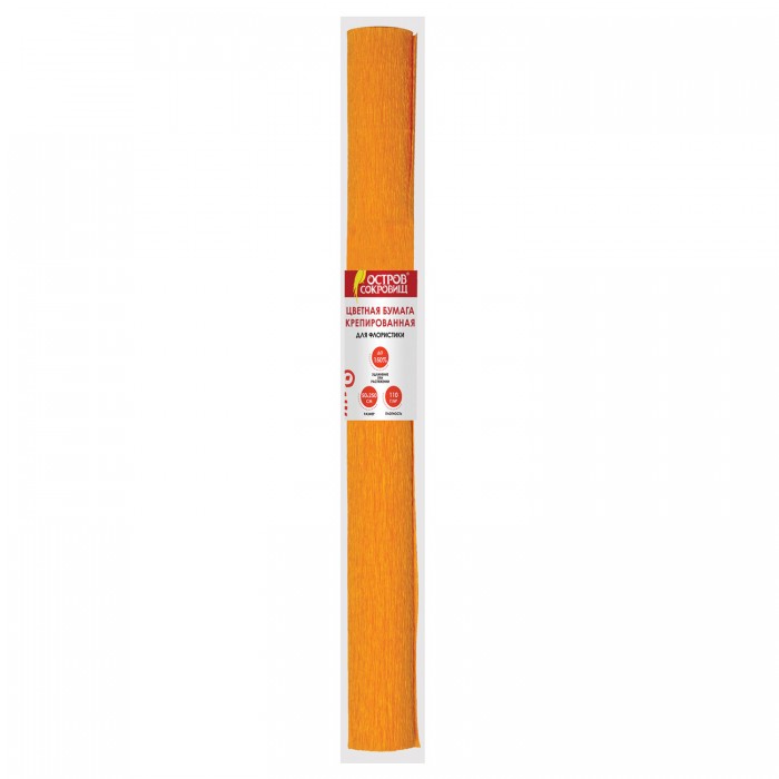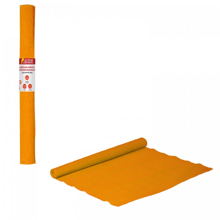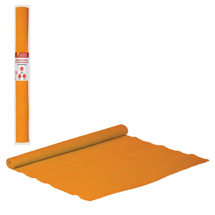 Бумага гофрированная/креповая, 110 г/м2, 50х250 см, оранжевая, ОСТРОВ СОКРОВИЩ, 129149