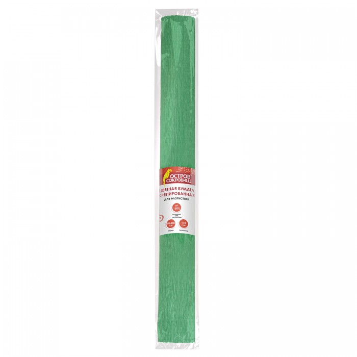 Бумага гофрированная/креповая, 110 г/м2, 50х250 см, зеленая, ОСТРОВ СОКРОВИЩ, 129151