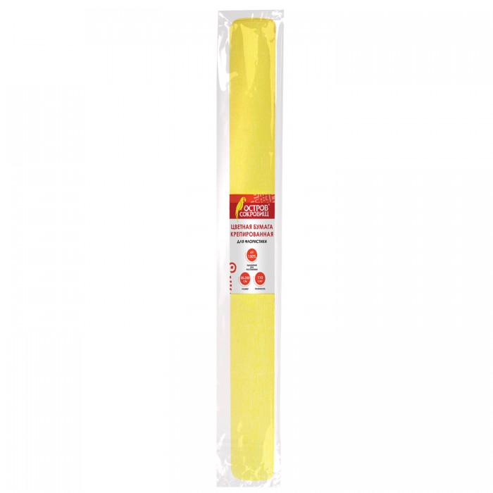 Бумага гофрированная/креповая, 110 г/м2, 50х250 см, желтая, ОСТРОВ СОКРОВИЩ, 129146