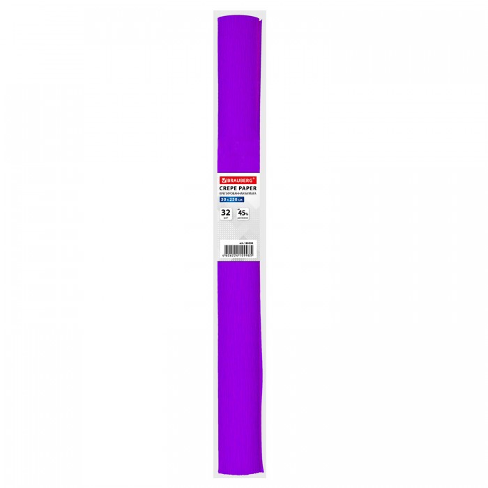 Бумага гофрированная/креповая, 32 г/м2, 50х250 см, фиолетовая, в рулоне, BRAUBERG, 126533