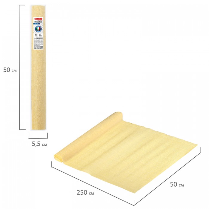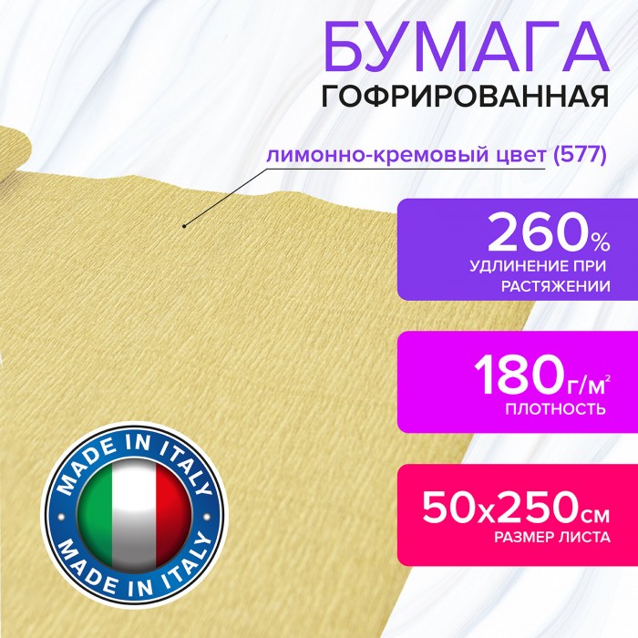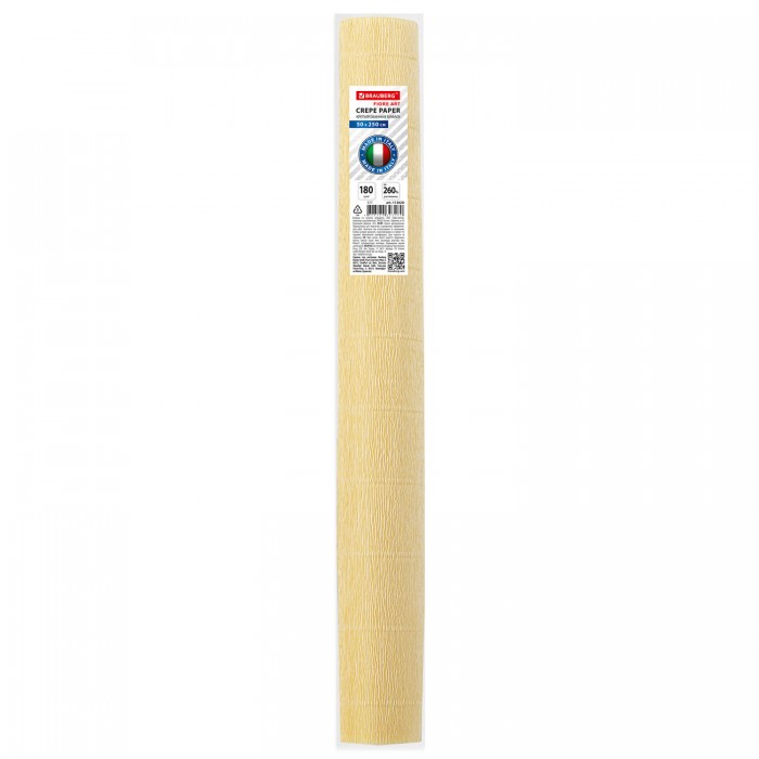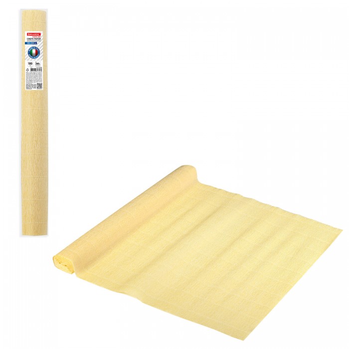Бумага гофрированная/креповая (ИТАЛИЯ) 180 г/м2, 50х250 см, лимонно-кремовая (577), BRAUBERG FIORE, 112620
