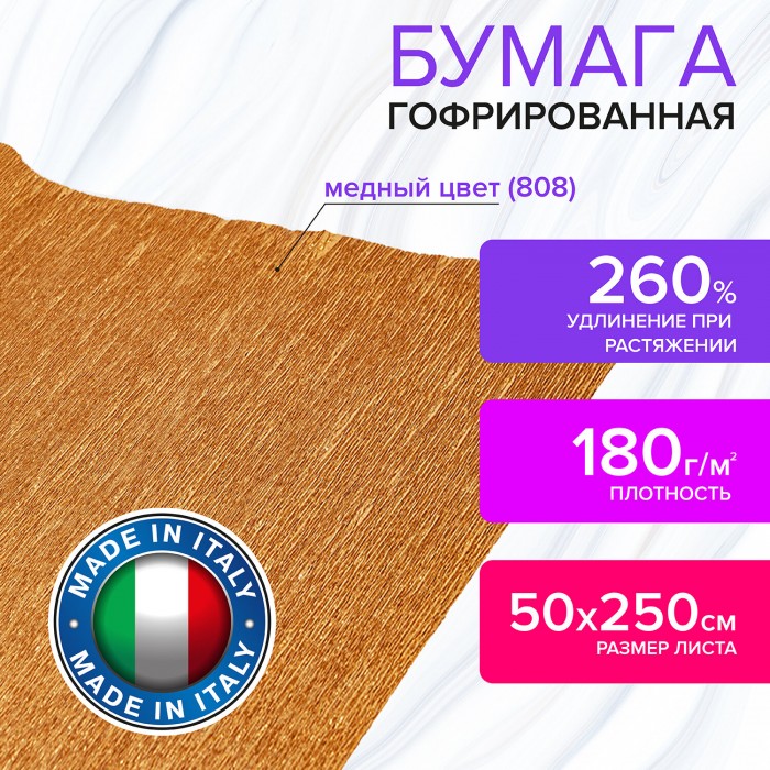Бумага гофрированная/креповая (ИТАЛИЯ) 180 г/м2, 50х250 см, медная (808), BRAUBERG FIORE, 112656