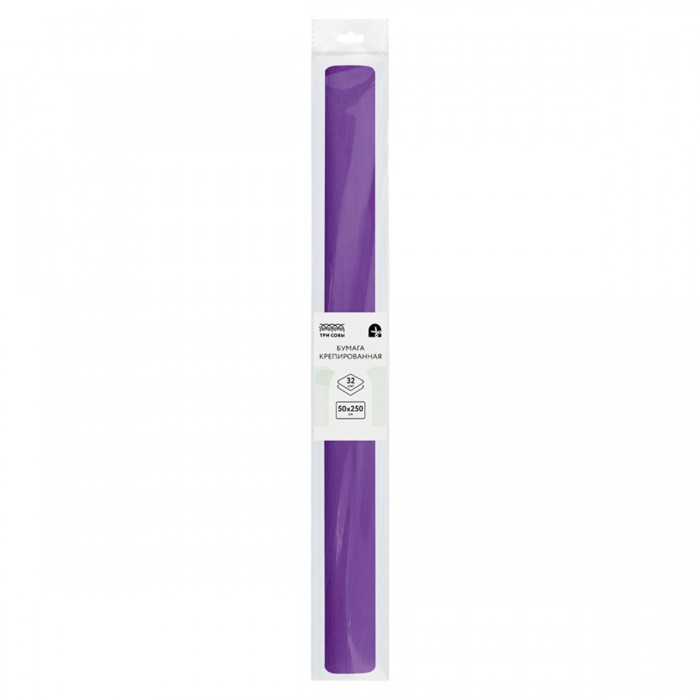 Бумага крепированная ТРИ СОВЫ, 50*250см, 32г/м2, фиолетовая, в рулоне, пакет с европодвесом
