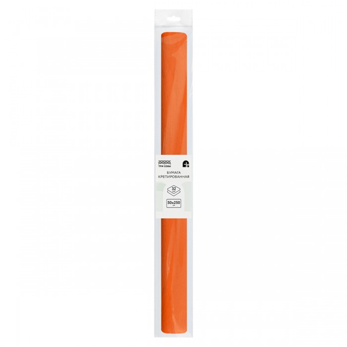 Бумага крепированная ТРИ СОВЫ, 50*250см, 32г/м2, оранжевая, в рулоне, пакет с европодвесом