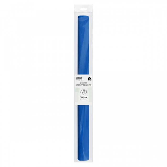 Бумага крепированная ТРИ СОВЫ, 50*250см, 32г/м2, синяя, в рулоне, пакет с европодвесом