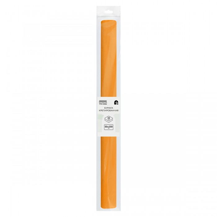 Бумага крепированная ТРИ СОВЫ, 50*250см, 32г/м2, светло-оранжевая, в рулоне, пакет с европодвесом