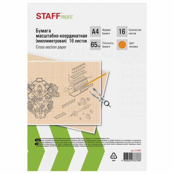 Масштабно-координатная бумага STAFF предназначена для выполнения чертежно-графических работ карандашом или тушью. Применяется при создании инженерных схем и чертежей, планов и карт, а также при рисовании выкройки.