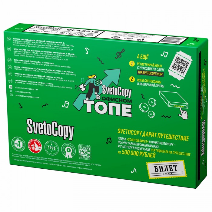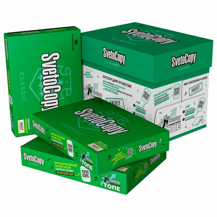 Бумага SVETOCOPY предназначена для повседневной работы в офисе. Подходит для всех классов копировальных аппаратов и принтеров.