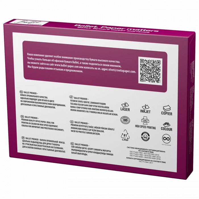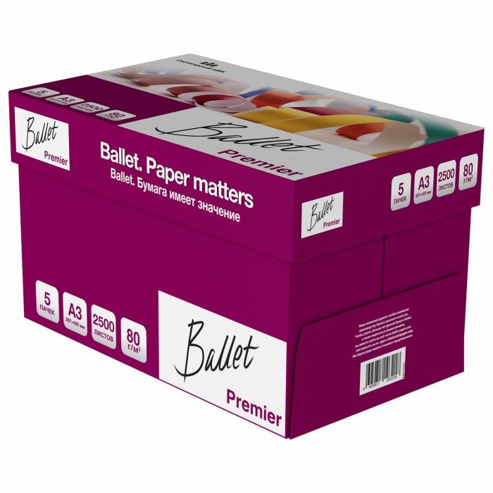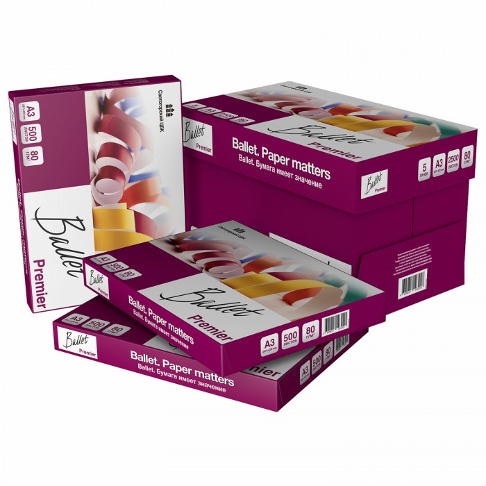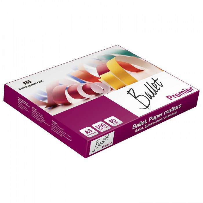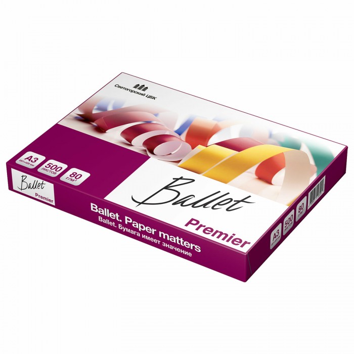 Бумага офисная БОЛЬШОГО ФОРМАТА (297х420), А3, 80 г/м2, 500 л., марка А, BALLET PREMIER, 160% (CIE)