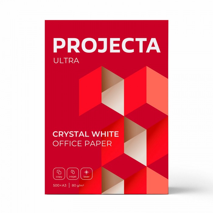 Бумага офисная БОЛЬШОГО ФОРМАТА (297х420), А3, 80 г/м2, 500 л., марка А, PROJECTA ULTRA, Россия, 162% (CIE)