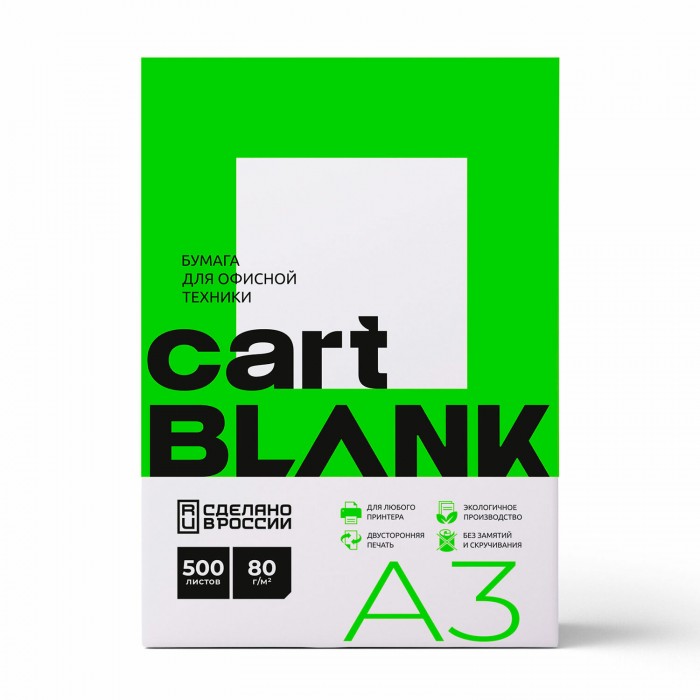 Соответствует качеству Снегурочка, IQ Economy, MAESTRO Standard. Cartblank – начните новое дело с чистого листа! Дизайн пачки символизирует структурность и собранность, присущие началу планирования любого нового проекта с чистого листа.