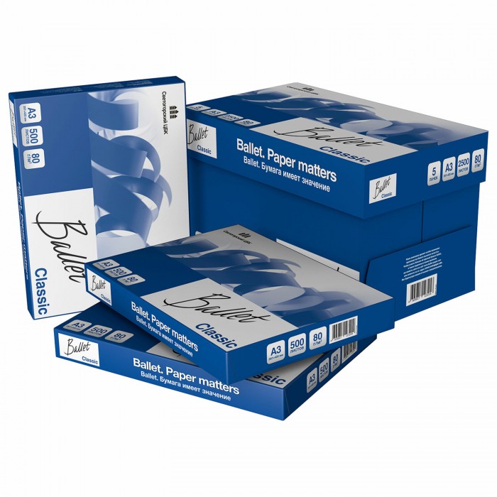 Бумага офисная БОЛЬШОГО ФОРМАТА (297х420), А3, 80 г/м2, 500 л., марка В, BALLET CLASSIC, 153% (CIE)