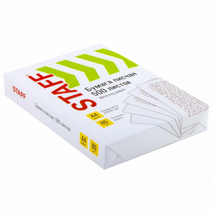 Бумага писчая STAFF предназначена для создания сопроводительной документации, письма и канцелярских работ.