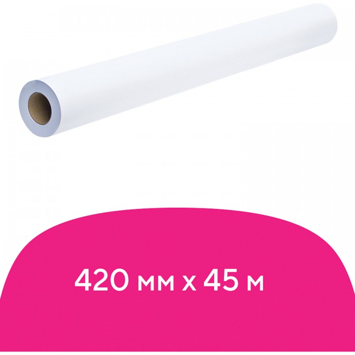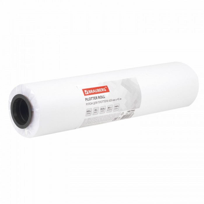 Бумага широкоформатная рулон для плоттера, 420 мм х 45 м х втулка 50,8 мм, 80 г/м2, белизна CIE 146%, BRAUBERG, 110625