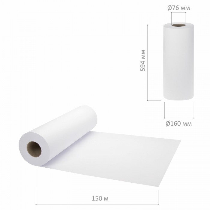 Бумага широкоформатная рулон для плоттера, 594 мм х 150 м х втулка 76 мм, 80 г/м2, белизна CIE 146%, BRAUBERG, 110633