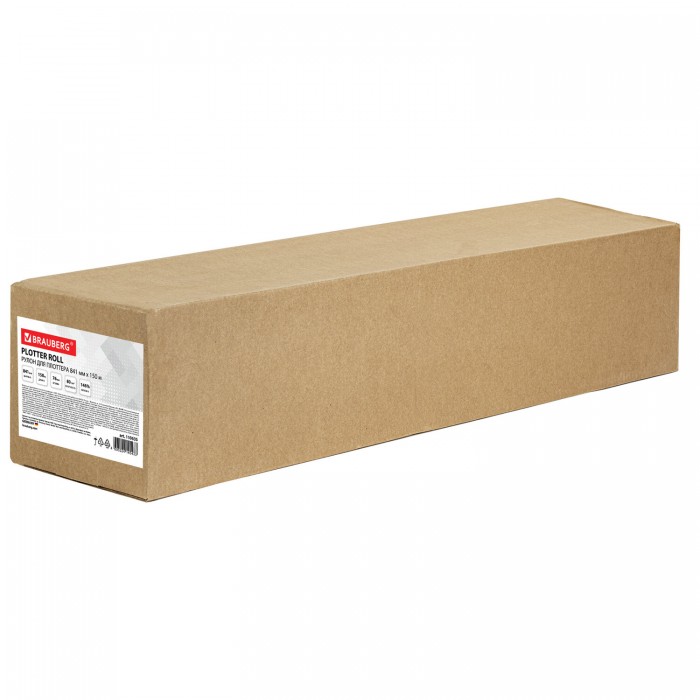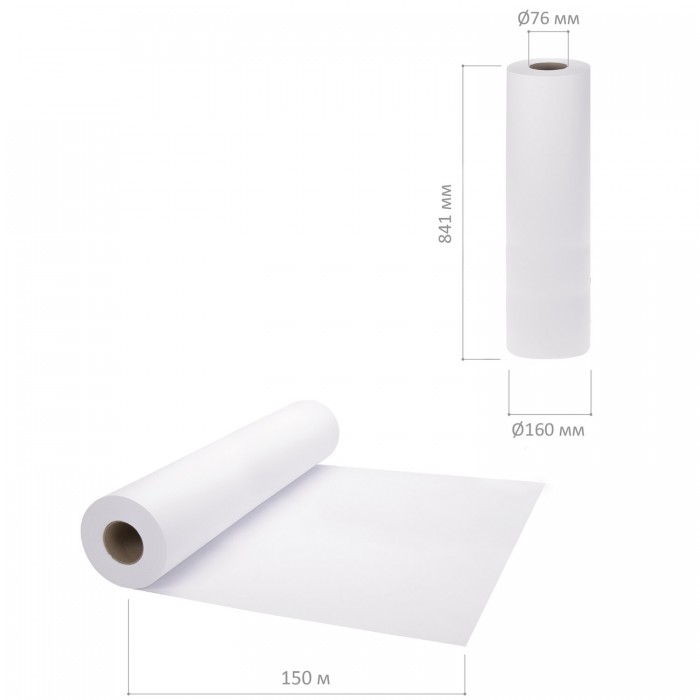 Бумага широкоформатная рулон для плоттера, 841 мм х 150 м х втулка 76 мм, 80 г/м2, белизна CIE 146%, BRAUBERG, 110635