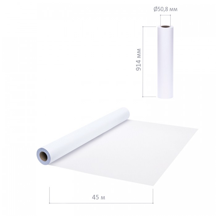 Бумага широкоформатная рулон для плоттера 914 мм х 45 м х втулка 50,8 мм, 80 г/м2, белизна CIE 146%, BRAUBERG, 114182