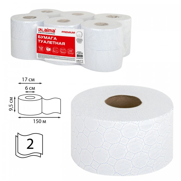 Профессиональная туалетная бумага LAIMA PROFESSIONAL санитарно-гигиенического назначения применяется в местах с повышенной проходимостью, таких как общественные туалетные комнаты офисов, гостиниц, торговых центров, вокзалов.