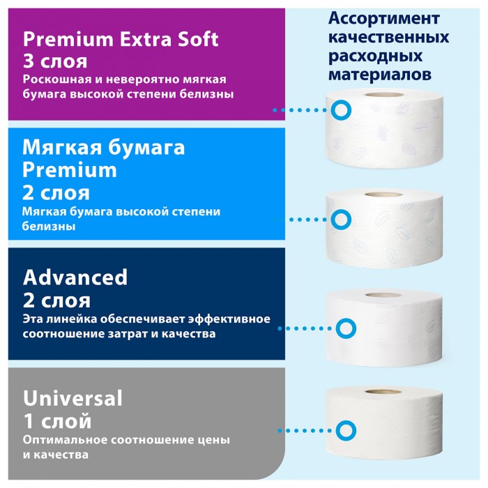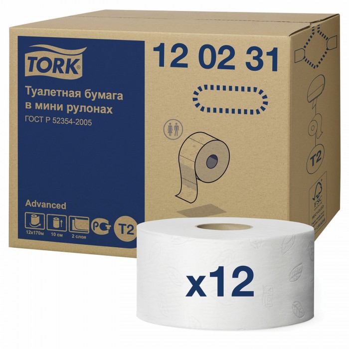 Бумага туалетная 170 метров, TORK (Система T2) ADVANCED, 2-слойная, белая, КОМПЛЕКТ 12 рулонов, 120231