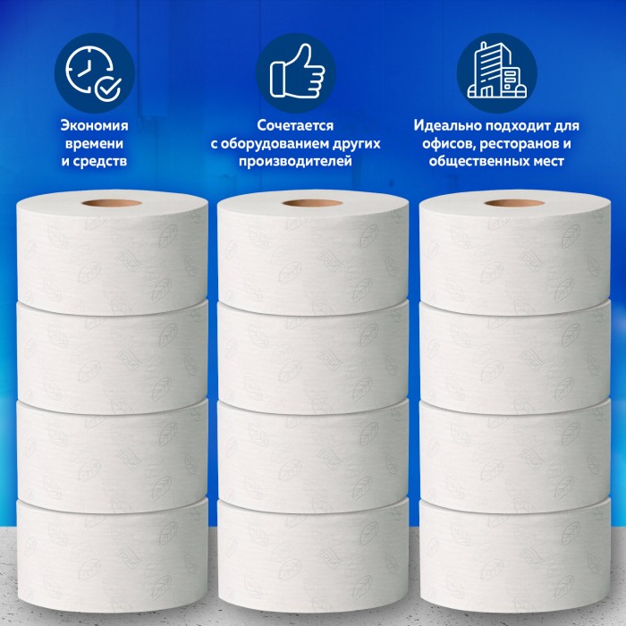 Качественная туалетная бумага для диспенсеров, изготовлена из переработанного сырья с тиснением серого цвета. Подходит для использования в местах со средней и высокой проходимостью. Высокая впитывающая способность, перфорация для отрыва листов.