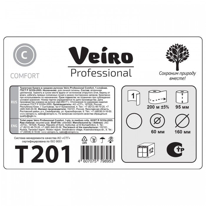 Бумага туалетная 200 м, VEIRO Professional (Система T2), КОМПЛЕКТ 12 шт., COMFORT, T201 в интернет-магазине AV Group по цене от 1 615 руб. с доставкой по Верхней Пышме, Екатеринбургу и Свердловской области. Минимальная сумма заказа в корзине - от 10 т.р.