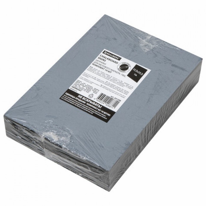 Ценники меловые BRAUBERG предназначены для нанесения информации меловыми маркерами. Идеально подходит для яркого размещения информации дома и в различных учреждениях (акции, цены, спецпредложения для клиентов, важные уведомления).