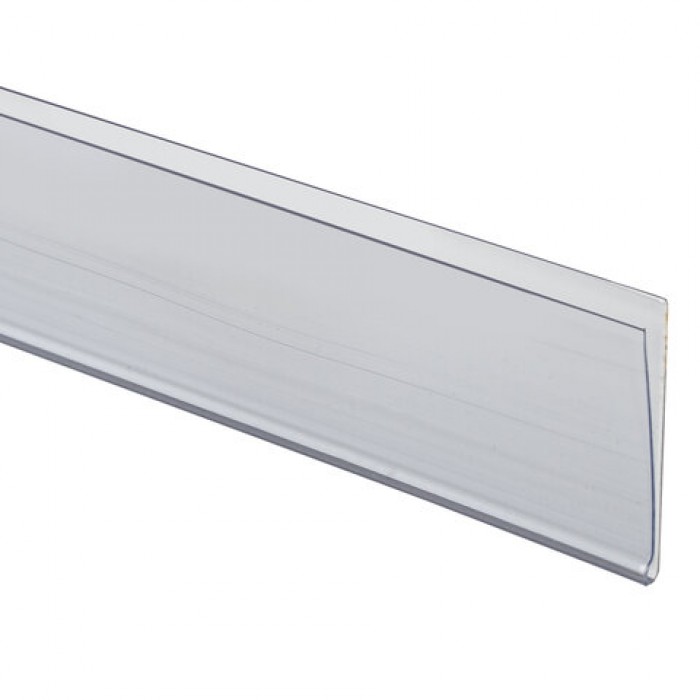 Самоклеящийся ценникодержатель DBR 39. Крепится на поверхность при помощи двустороннего прозрачного скотча, нанесенного на него.