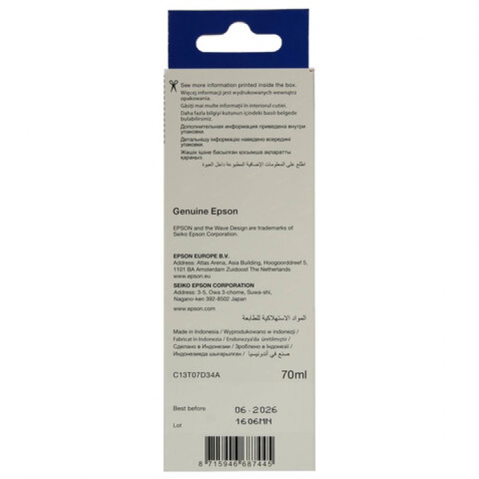 Чернила EPSON 115 (C13T07D34A) для СНПЧ L8160/L8180, пурпурные, объем 70 мл, ОРИГИНАЛЬНЫЕ