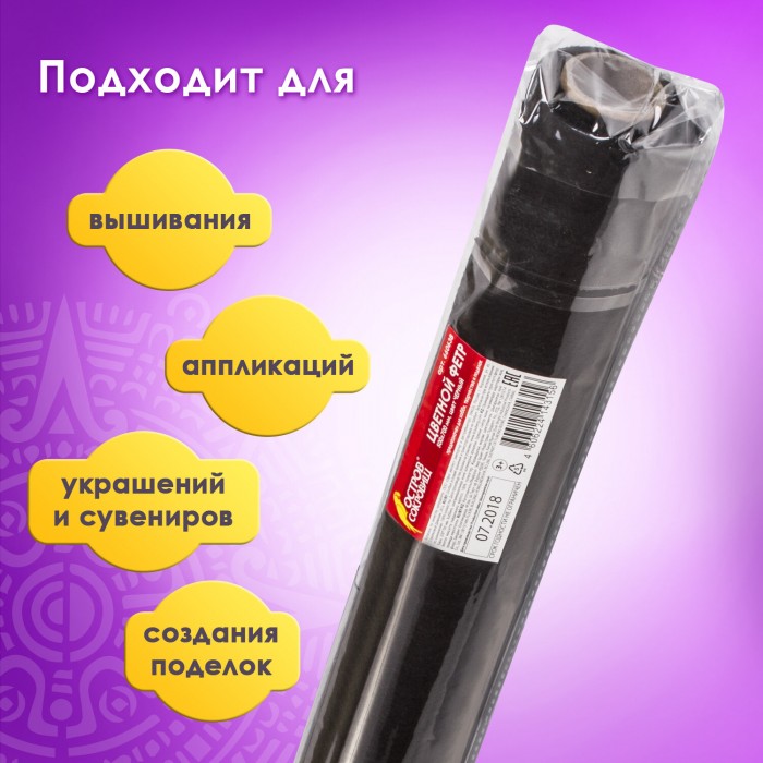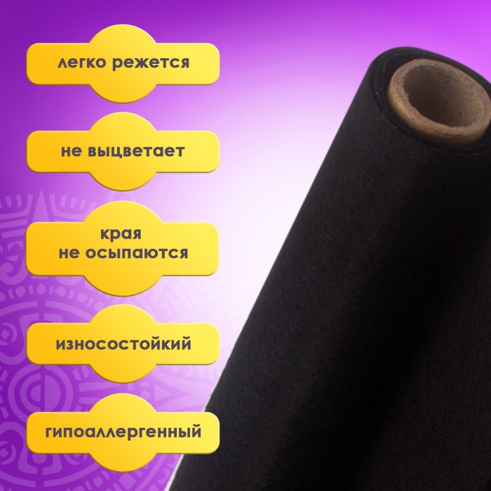 Цветной фетр МЯГКИЙ 500х700 мм, 2 мм, плотность 170 г/м2, рулон, черный, ОСТРОВ СОКРОВИЩ, 660638