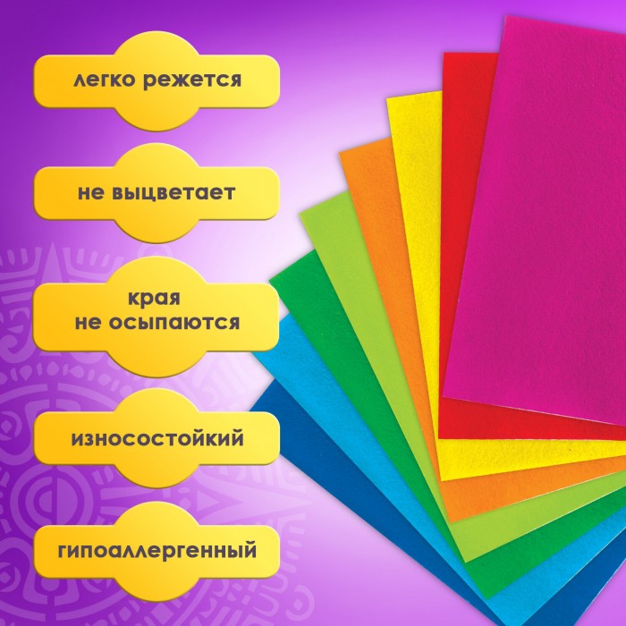 Цветной фетр МЯГКИЙ А4, 2 мм, 8 листов, 8 цветов, плотность 170 г/м2, ОСТРОВ СОКРОВИЩ, 660621