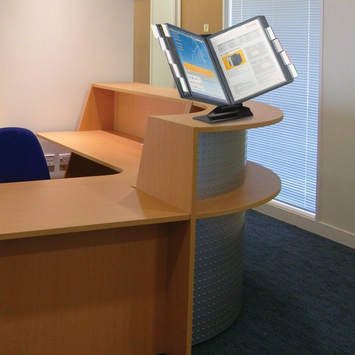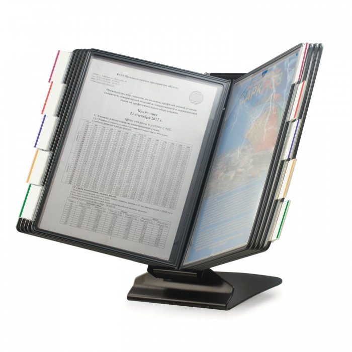 Настольная демонстрационная система BRAUBERG позволяет удобно и быстро разместить информацию о компании, о предлагаемых товарах, услугах и ценах, инструкции для персонала и др.