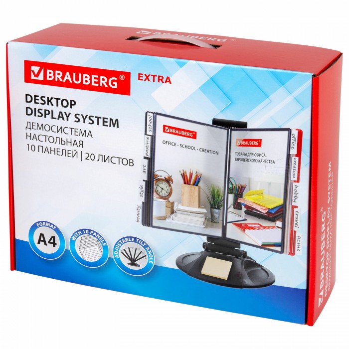 Настольная демонстрационная система BRAUBERG EXTRA позволяет удобно и быстро разместить информацию о вашей компании, товарах, услугах, ценах, инструкции для персонала.