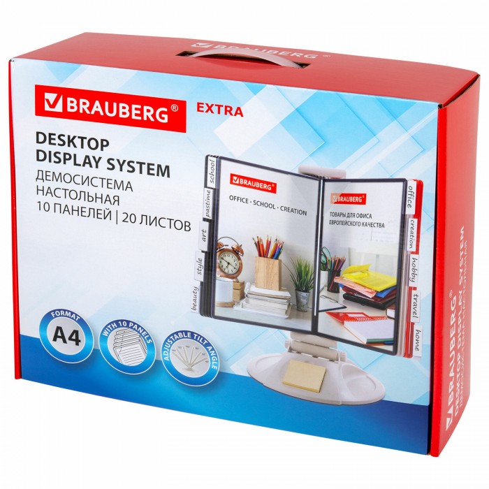 Настольная демонстрационная система BRAUBERG EXTRA позволяет удобно и быстро разместить информацию о вашей компании, товарах, услугах, ценах, инструкции для персонала.