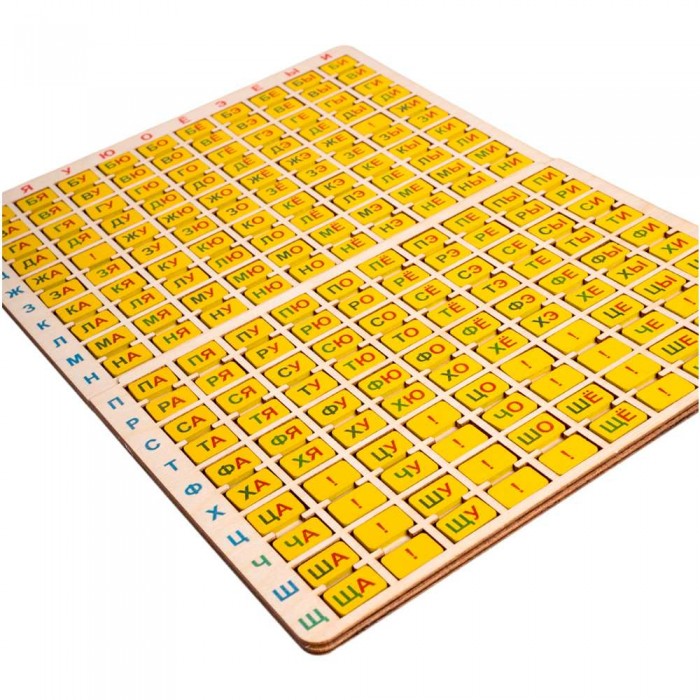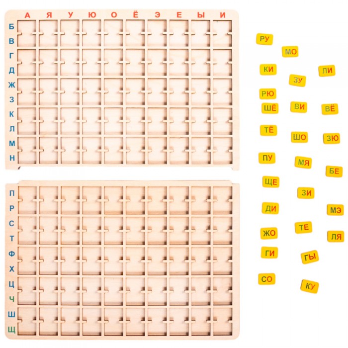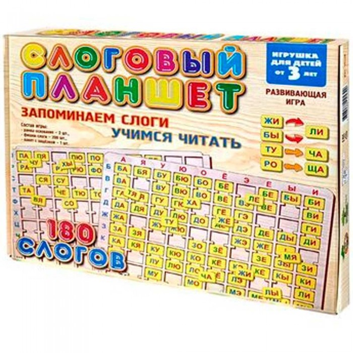 Размер упаковки: 30,5 х 15,4 х 6,3 см Размер изделия: основание из 2 частей (общий размер) 26,5х36 см, фишки-слоги 1,2х2 см Функционал: деревянная развивающая ига Вид упаковки: картонная коробка Вид настольной игры: развивающая игра Страна производитель: Россия Материал: бумага, дерево Комплектация: основание из 2-х частей - 1 шт, фишки-слоги - 200 шт, пакет с защелкой - 1 шт Вес: 520 гр. Возраст ребенка: для детей от 3 лет Деревянные пазлы для маленьких «Слоговый планшет» - это находка для тех, кто учится читать! Особенности: - все детали игры выполнены из экологичной березовой фанеры - слоговые таблицы представляют собой материал, предназначенные для обучения детей чтению по слогам - состоят из столбцов гласных букв и строк - согласных - синим цветом обозначена твердость согласных, зеленым мягкость