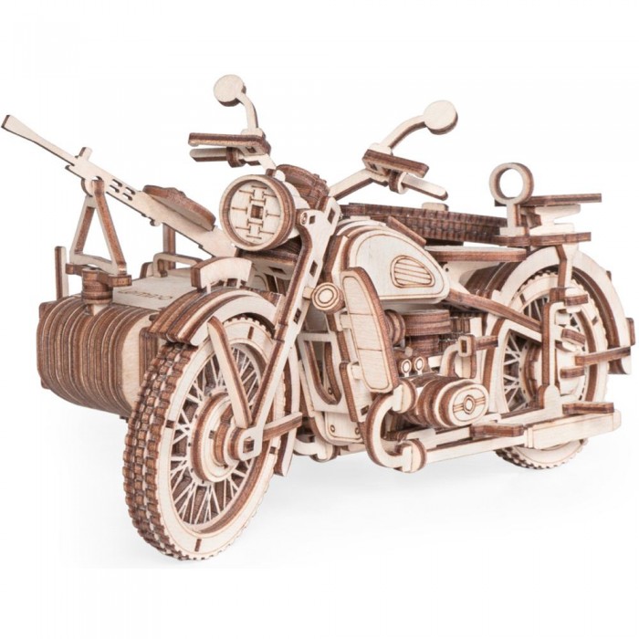 Деревянный Конструктор 3D Мотоцикл с коляской Уран 0159