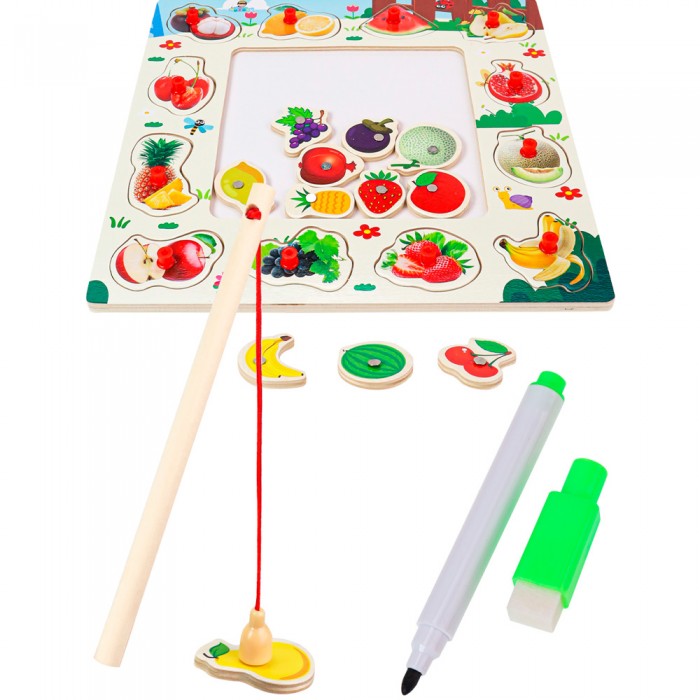 Деревянная Пазл рамка магнитная с рыбалкой и маркером 30х30см. И-0409
