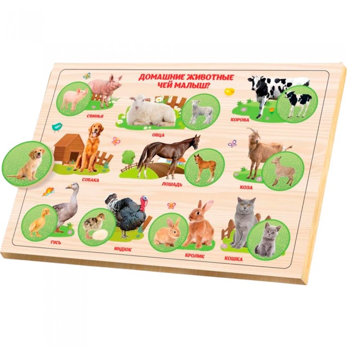Размер упаковки: 28 х 19,5 х 1 см Функционал: развивающая игра, рамки и вкладыши Упаковка: пленка Страна обладатель бренда: Россия Материал: дерево, текстиль Комплектация: основа - 1 шт., фигурка - 10 шт. Возраст ребенка: от 3 лет Деревянная игра состоит из основы и различных фигурных элементов, которые нужно располагать по принципу рамок и вкладышей. Особенности: - элементы логически связаны между собой; - на липучках; - знакомство с животными; - фигурная вырубка; - яркие цвета; - чёткая печать; - натуральное дерево. Рамка вкладыш развивает у детей: - мелкую моторику; - зрительное восприятие; - ассоциативное и логическое мышление; - память; - умение сопоставлять.