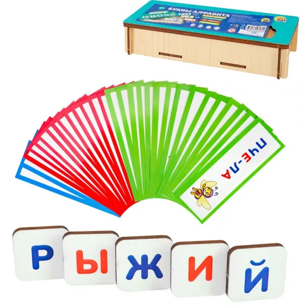 Размер упаковки: 20,7*8,1*4,8 см Размер изделия: 20,5*7,5*4 см Вес: 261 г Функционал: рамки и вкладыши, сортёр, обучающие функции (счёт, цвет, форма) Упаковка: термопленка Страна обладатель бренда: Россия Материал: фанера, картон Комплектация: ящик - 1 шт., фишки с дуквами, карточки Возраст ребенка: от 3 лет Деревянная игра сочетает в себе несколько вариантов: сортёр, вкладыши, обучение буквам русского алфавита и чтению. Сортер - развивающая игрушка, предназначенная для сортировки предметов. Цветные элементы достаточно крупные. Фигурная вырубка способствует развитию мелкой моторики у малышей. Сделанные из высококачественной древесины, элементы не деформируются и легко берутся в руки. Сборка головоломки способствует развитию внимания, логического мышления, усидчивости и подарит массу положительных эмоций. Все детали данной игры изготовлены из экологически чистых материалов. Товар сертифицирован